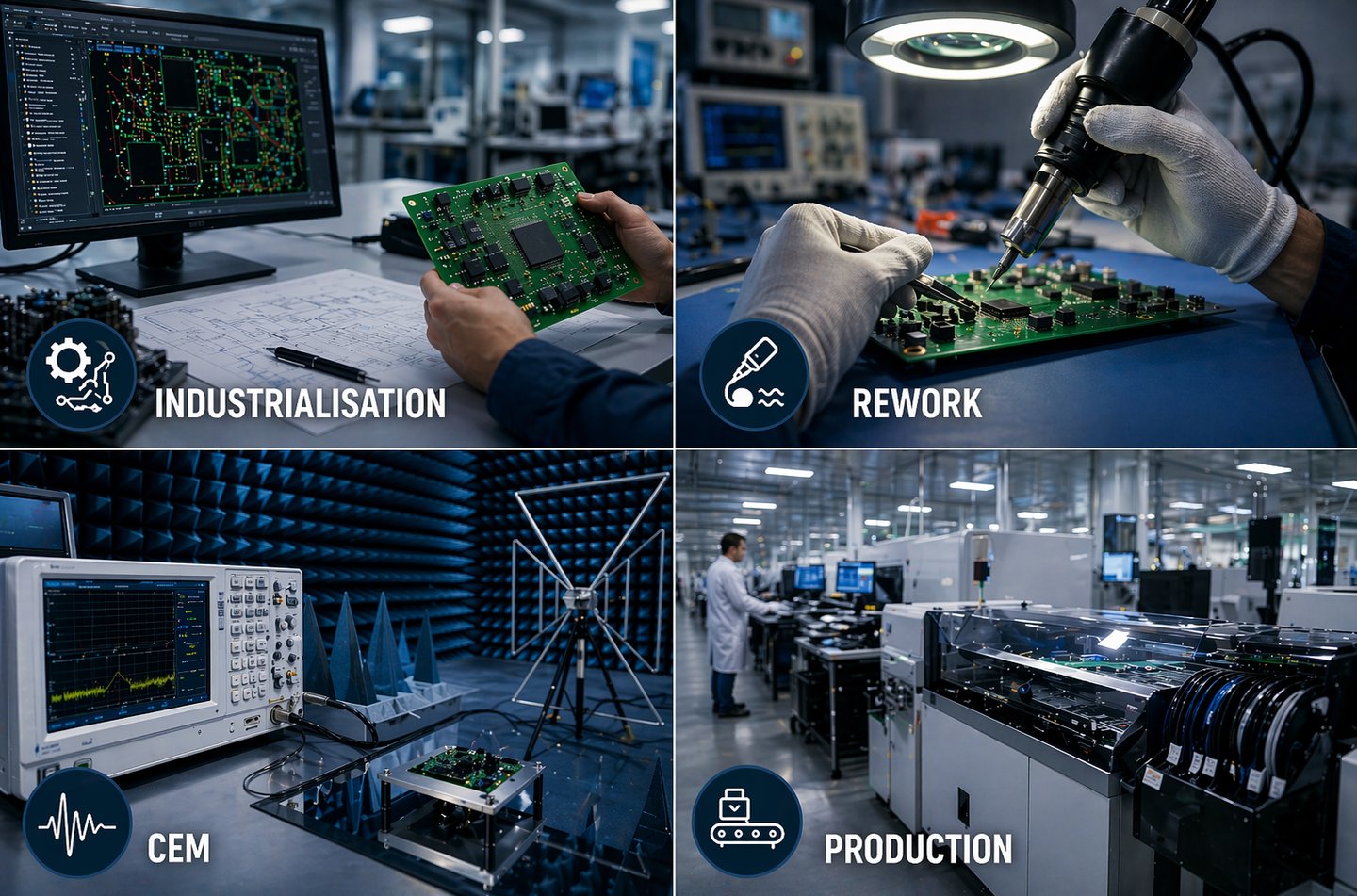 Anthemis Technologies assure l’industrialisation et la production en petites, moyennes et grandes séries de cartes électroniques.